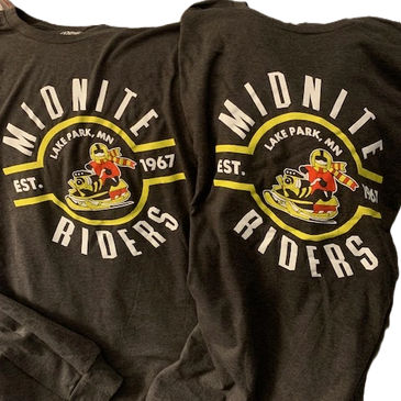 Available in sizes XS to XXL, our Midnite Riders merchandise is perfect for winter gear enthusiasts. Each piece is priced at $30 and is ideal for snowmobile apparel.